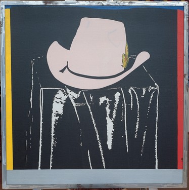 As a young artist, he studies to become a typographer, and develops a special interest in the turbulent events of the time, both in contemporary art and on the political stage. During the early sixties, he is closely involved with the happenings and colourful, carnival-like street performances orchestrated in Antwerp's city centre. By using images and text collages, he gradually develops his own unique form of expression. He creates letter and action paintings that form a critique on society – mostly in oil or acrylic on canvas – with a very direct and often humorous imagery. Subversive thinking and cynical understatements are frequently featured in his works. Over time he also uses the square metre as a standard measurement for his canvases.